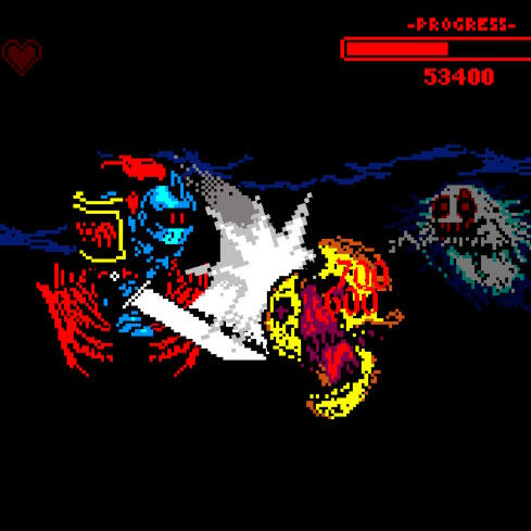 A blood-curdling, demon-slashing dash of death! Witness the horrifying adventures of a mysterious suit of armor known only as “The Knight.” Armed with a mighty sword and equipped with blood-red wings, the Knight must face and vanquish a never-ending onslaught of bloodthirsty ghouls, flaming skulls and unspeakable horrors while jumping over spiked pits and flying through small gaps.